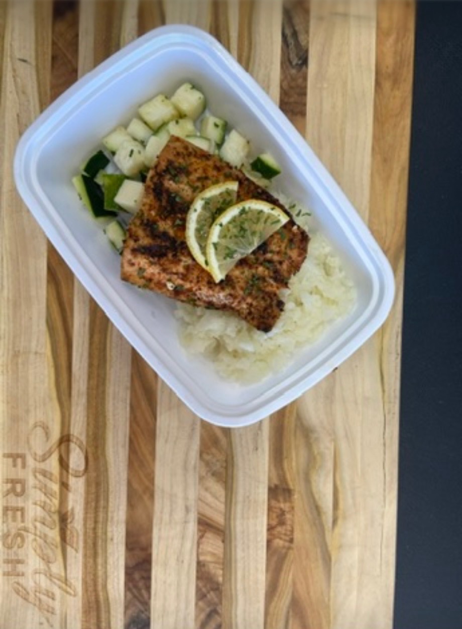 Indulge in the vibrant flavors of our Low-Carb Tajin Salmon, featuring perfectly grilled salmon seasoned with tajin. Paired with low-carb cauliflower rice and tender zucchini, this dish strikes the perfect balance between bold spices and natural sweetness. Seasoned with kosher salt and black pepper and tajin, this wholesome meal is packed with protein and nutrients, delivering a flavorful and satisfying dining experience while keeping it low on carbs.